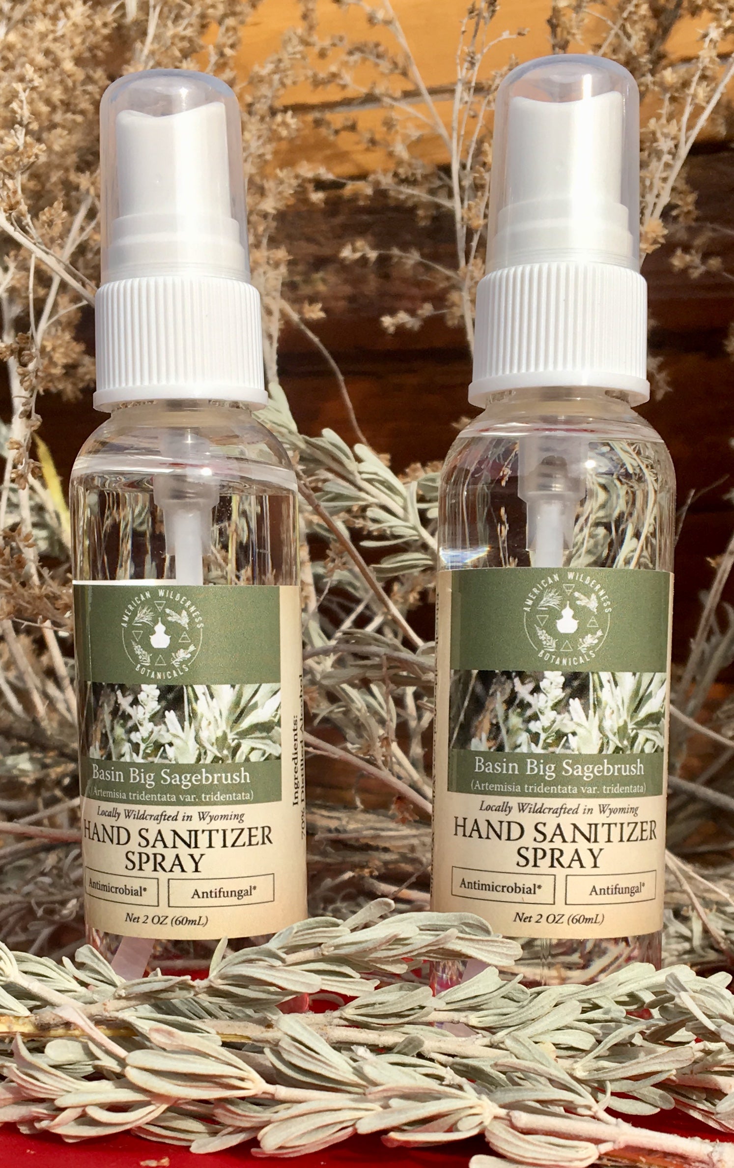 Basin Big Sagebrush (Artemisia tridentata spp. tridentata). Locally wild harvested in Wyoming. This hand and surface spray contains locally distilled ethyl alcohol (70% of product), Basin Big Sagebrush Hydrolat/Distillate (30%) and a small amount of Basin Big Sagebrush Essential Oil. For external use only. Do not spray near eyes or on face. This is a unique product that is in our hydrosol category. Because this product is 70% ethyl alcohol that has been distilled at a local distilery along with 30% Basin Big Sagebrush hydrosol and Basin Big Sagebrush essential oil. The Basin Big Sagebrush we add quickly disperses throughout the liquid making the product very aromatic. Alcohol and essential oil are miscible meaning they mix; whereas water and essential oil are hydrophobic and not miscible as they always separate. A combination of water and alcohol (alcohol being higher in content) still is miscible with essential oil. Just a little fun chemistry information for you.